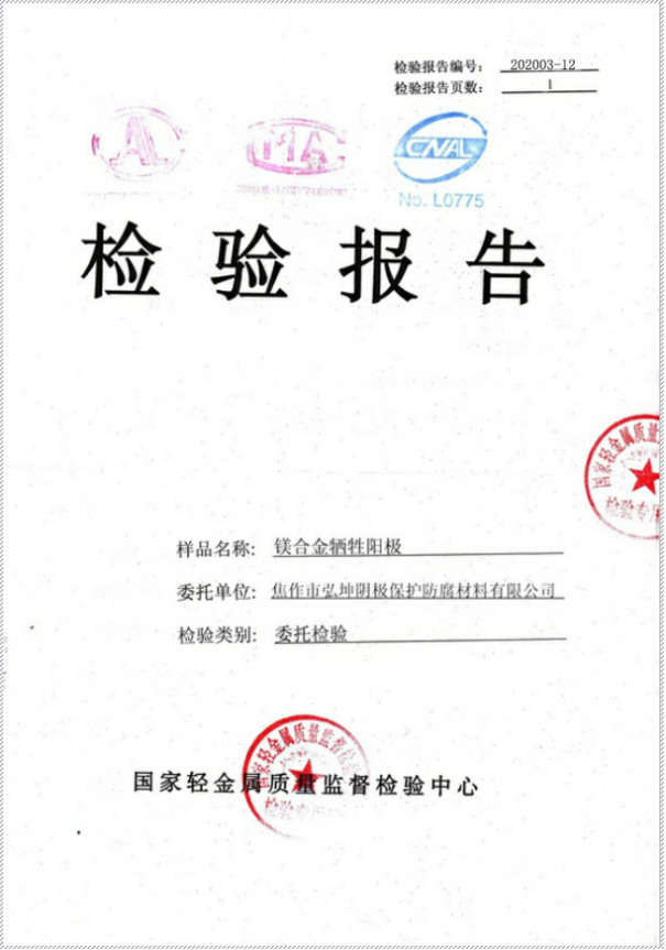 鎂合金犧牲陽極檢報(bào)告Ⅰ